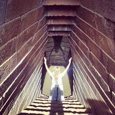 In queste coincidenze astrali, la persona che scende le scale, giunta all’ultimo scalino, vede proiettare la propria ombra capovolta sulla parete della camera interna, una volta immersa e purificata dalle sacre acque, risale spiritualmente elevata percorrendo la scala rovesciata sul soffitto, specularmente alla scala di discesa.